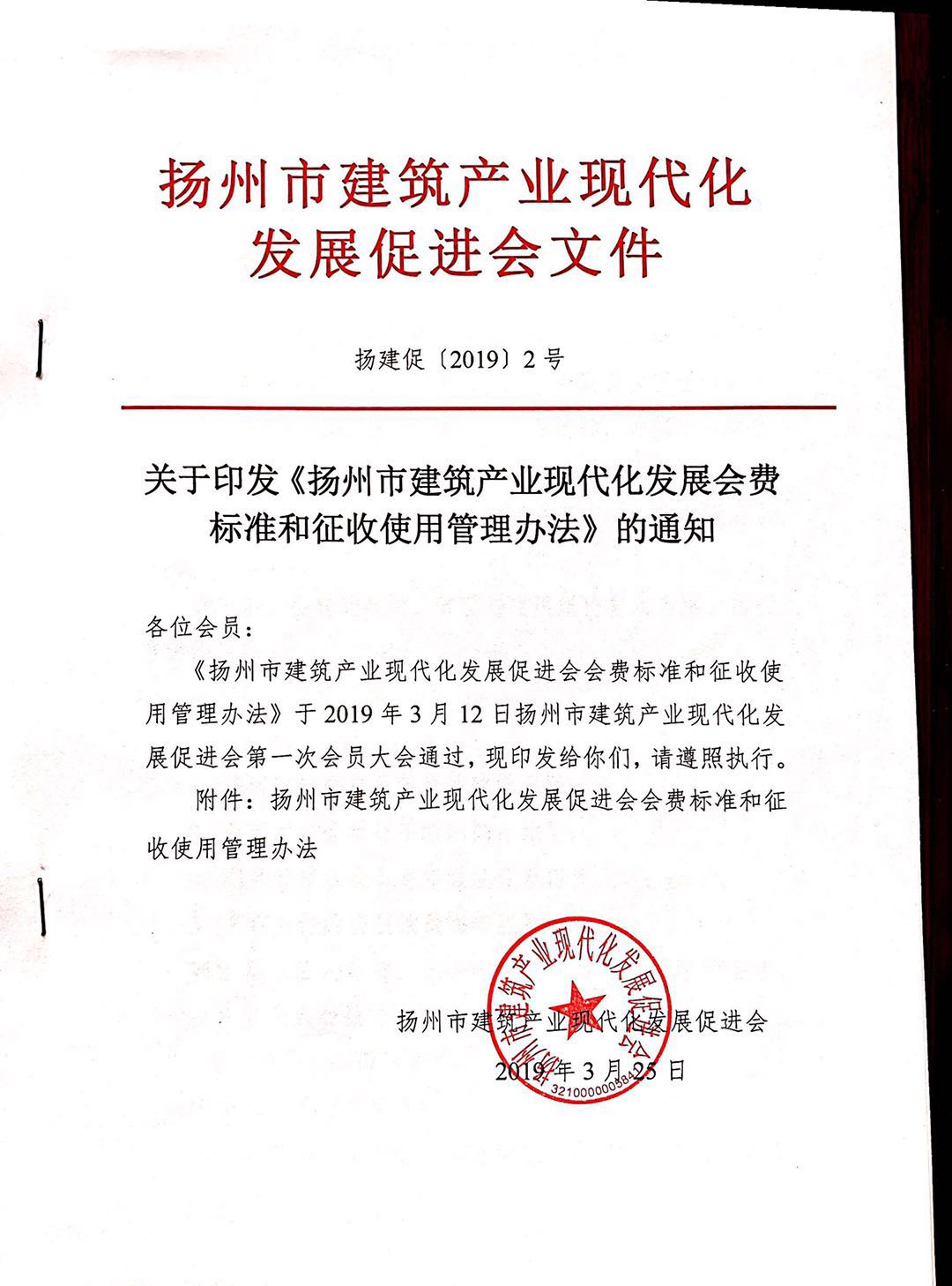 关于印发《扬州市建筑产业现代化发展会费标准和征收使用管理办法》的通知