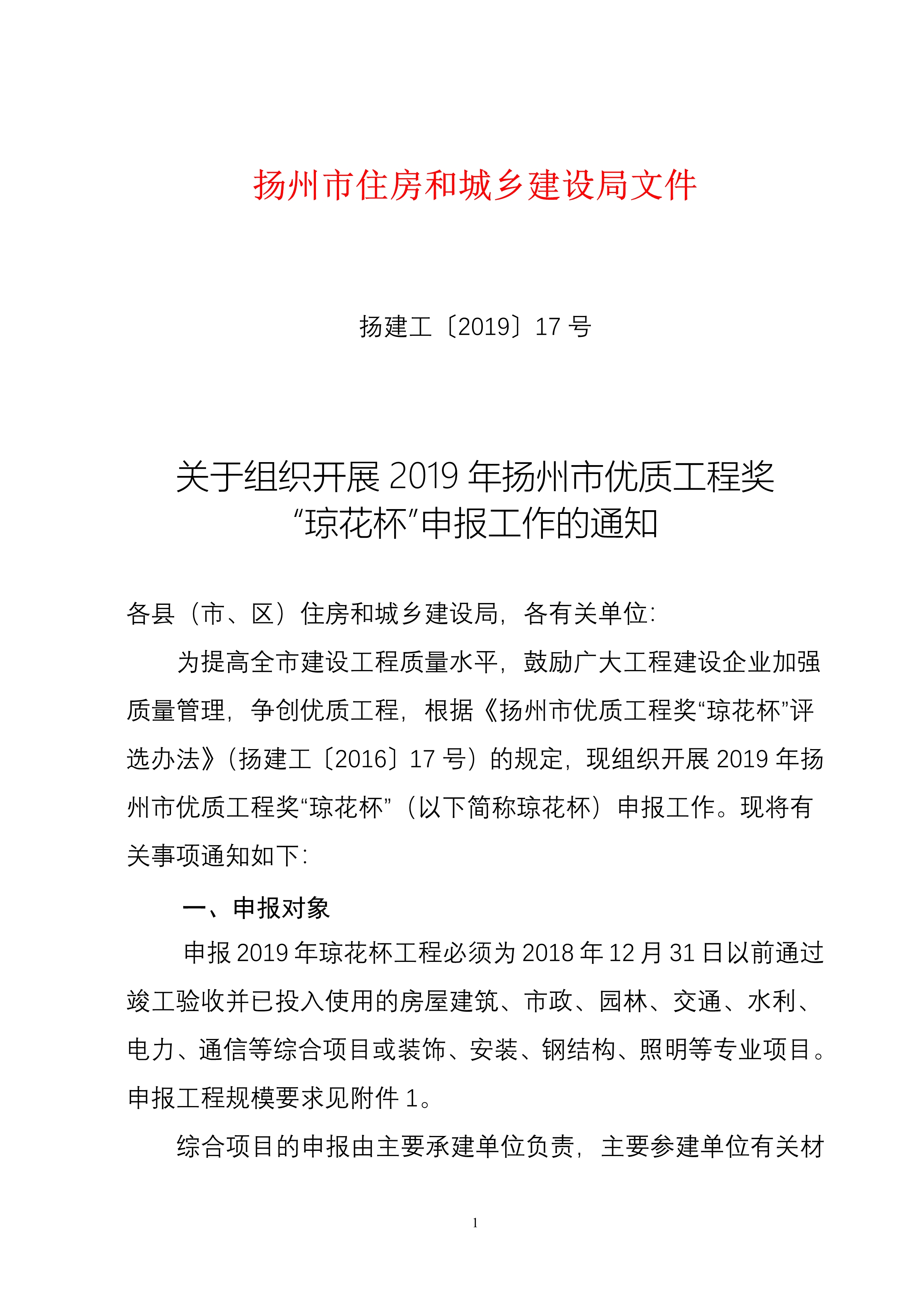 转发:关于组织开展2019年扬州市优质工程奖 “琼花杯”申报工作的通知