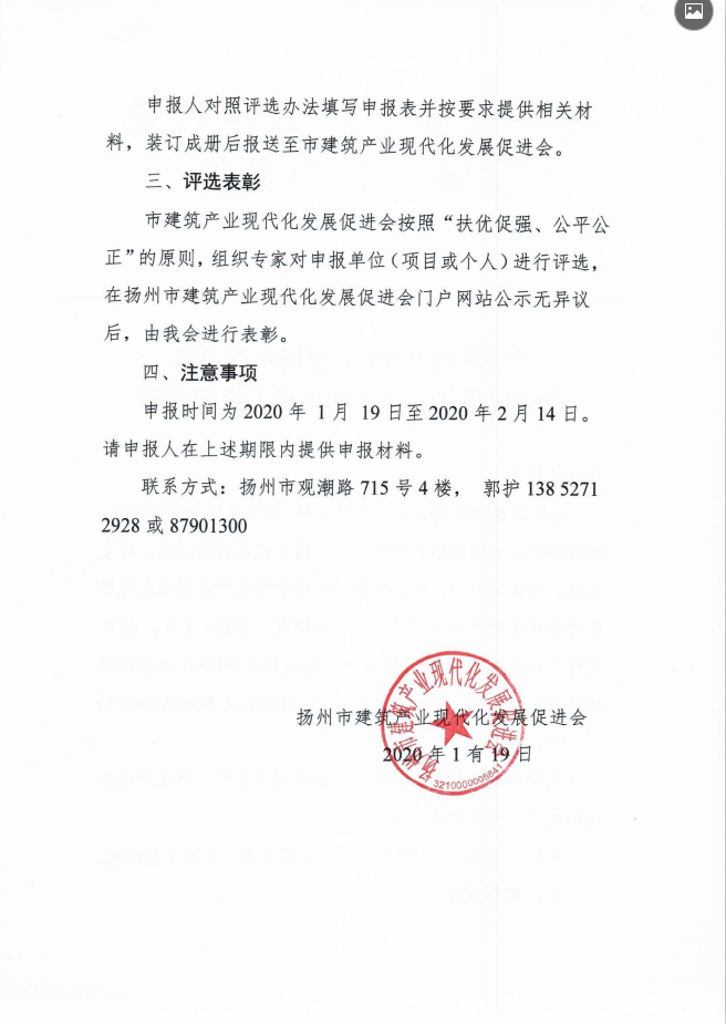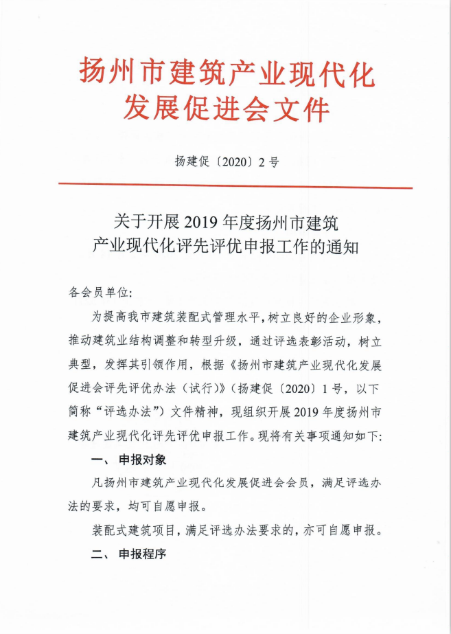 关于开展扬州市建筑产业现代化评先评优申报工作通知