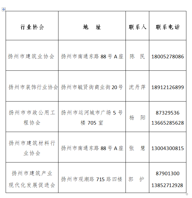 市相关行业协会联系方式