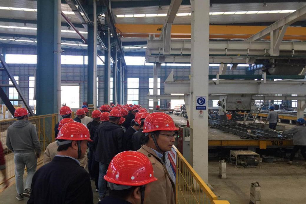 在构件生产厂听取专家介绍