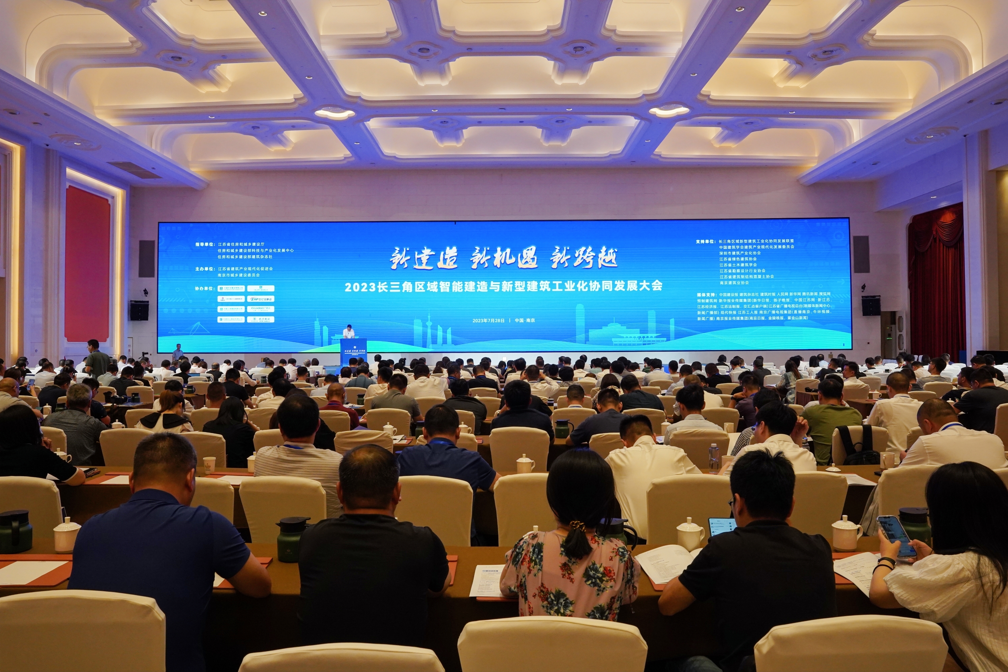 市促进会办公室(赵正香、郭 护/文 网络提供图片)7月28日,由省住建厅、住建部科技发展中心、《建筑业》杂志社指导,省建筑产业现代化促进会与南京市建委主办的2023长三角区域智能建造与新型建筑工业化协同发展大会在南京召开。会议以“新建造、新机遇、新跨越”为主题,旨在推动长三角区域智能建造与新型建筑工业化协同发展,加强长三角区域智能建造试点示范城市的合作与交流。