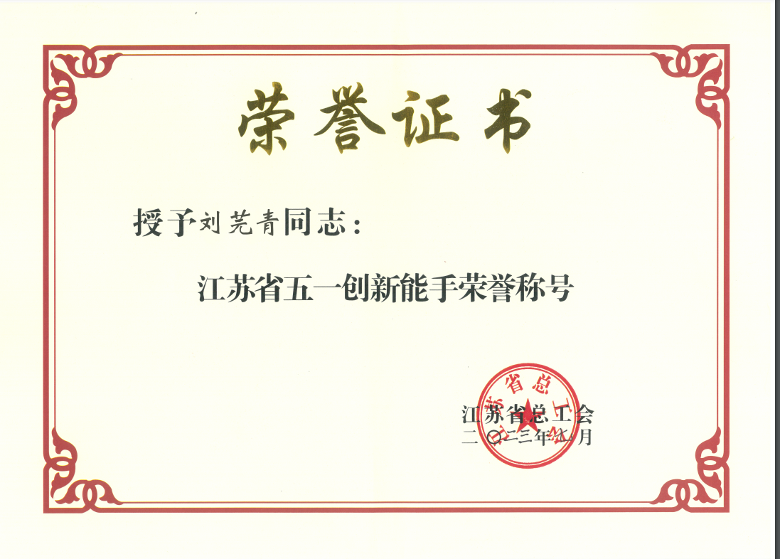获得省“五一创新能手”证书