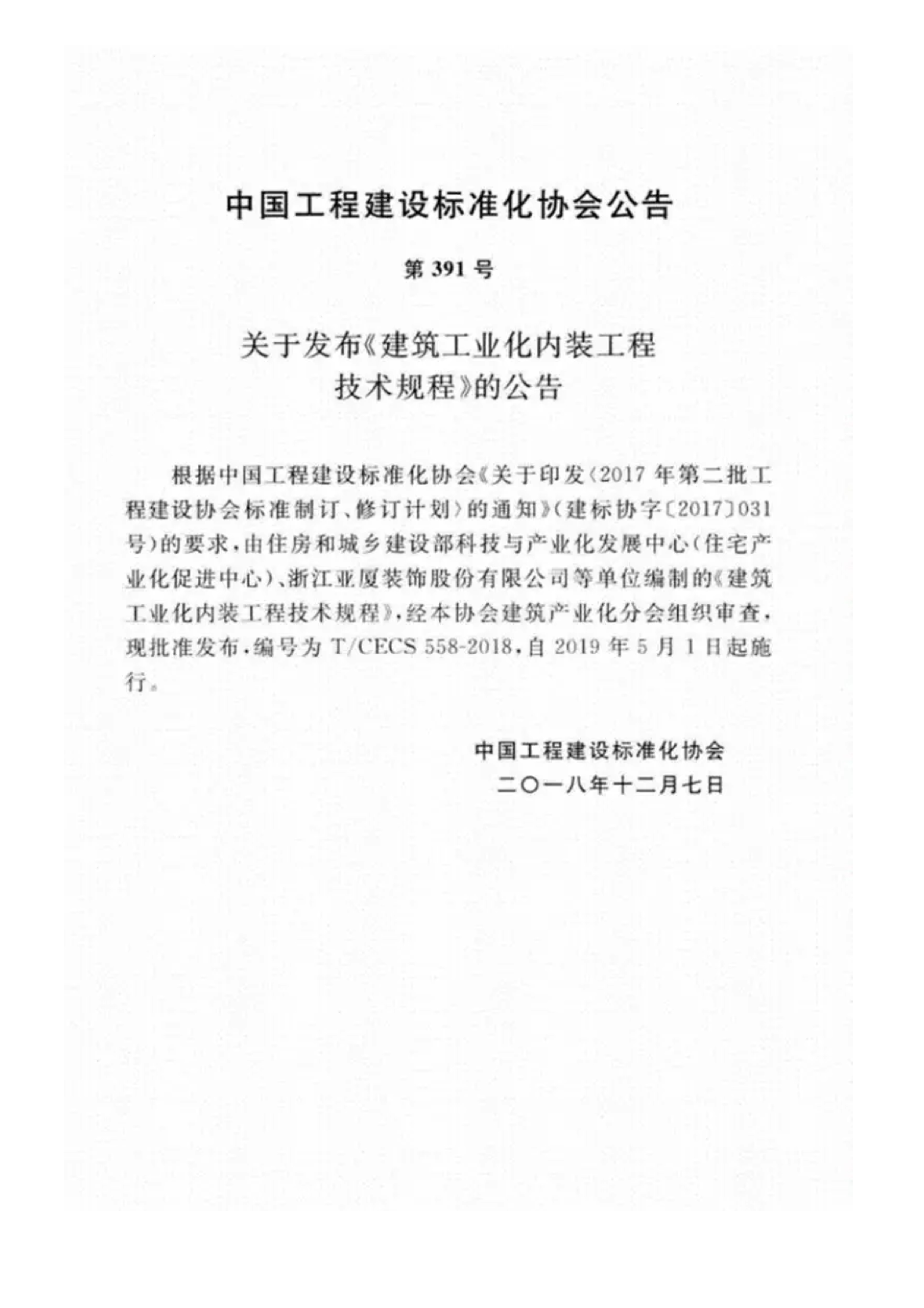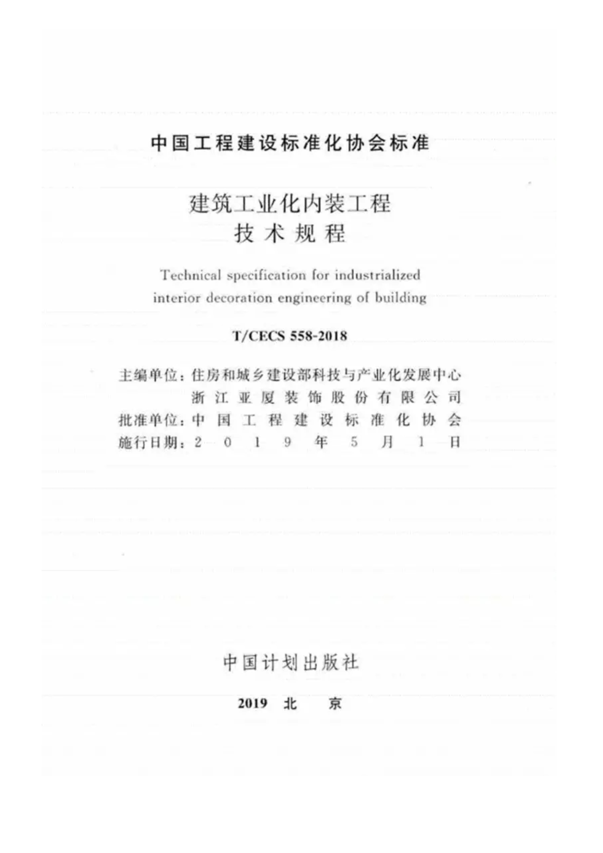 建筑工业化内装工程技术规程T/CECS558-2018